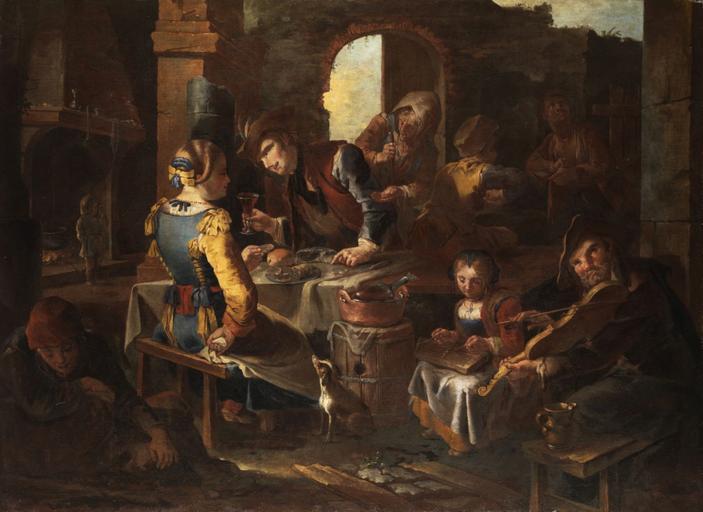 | Keywords: Todeschini (attr) Couple in a tavern.jpg Junges Paar in einer ländlichen Taverne Öl auf Leinwand 104 x 140 cm Young couple in a rural tavern oil on canvas 104 x 140 cm http //www hampel-auctions com/ century 18 attributed to Giacomo Francesco Cipper detto žIl Todeschini 1670 “1738 PD-old-100 Couples in art Hammered dulcimers Percussion instruments in art Violinists in art Meals in art 18th-century paintings of musicians 18th-century paintings of tavern interiors Open air restaurant and café areas Giacomo Francesco Cipper Images from Hampel Auctions Template artwork possible |