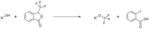 Keywords: Togni s reagent II reaction 02.svg en Reaction of Togni's reagent with alcoholes de Reaktion von Togni's reagenz mit Alkoholen own Steffen 962 2014-01-14 PD-chem Togni's reagent II Cc-zero