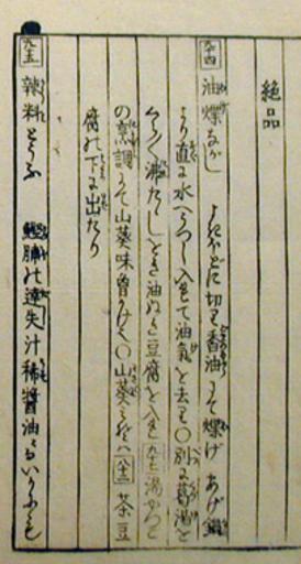 Keywords: Tohu100.jpg A picture of old japanese book named Strange 100 tofus from internet 1782 yujiyosi PD-Japan Check categories 2009 May 2 ja wikipedia 豆腐百珍 2 Tofu Edo period