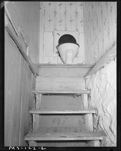 | Keywords: Toilet at head of stairs leading from basement in vacant house of company housing project. Industrial Collieries... - NARA - 540287.tif Scope and content General notes 540287 Local identifier 245-MS-122L Department of the Interior Solid Fuels Administration For War 04/19/1943 - 06/30/1947 NARA-Author Lee Russell 1903-1986 Photographer 2489414 <br /> Still Picture Records Section Special Media Archives Services Division NWCS-S National Archives at College Park 8601 Adelphi Road College Park MD 20740-6001 1946-06-13 Record group Record Group 245 Records of the Solid Fuels Administration for War 1937 - 1948 Record group ARC 572 Photographs of the Medical Survey of the Bituminous Coal Industry compiled 1946 - 1947 Series ARC 540230 File unit File unit ARC Variant control numbers NAIL Control Number NWDNS-245-MS-122L yes Other versions <gallery> File Toilet_at_head_of_stairs_leading_from_basement_in_vacant_house_of_company_housing_project _Industrial_Collieries _-_NARA_-_540287 tif tif File Toilet_at_head_of_stairs_leading_from_basement_in_vacant_house_of_company_housing_project _Industrial_Collieries _-_NARA_-_540287 jpg jpg </gallery> NARA-cooperation PD-USGov Toilets in the United States Coal mining in the United States NARA TIF images with categorized JPGs |