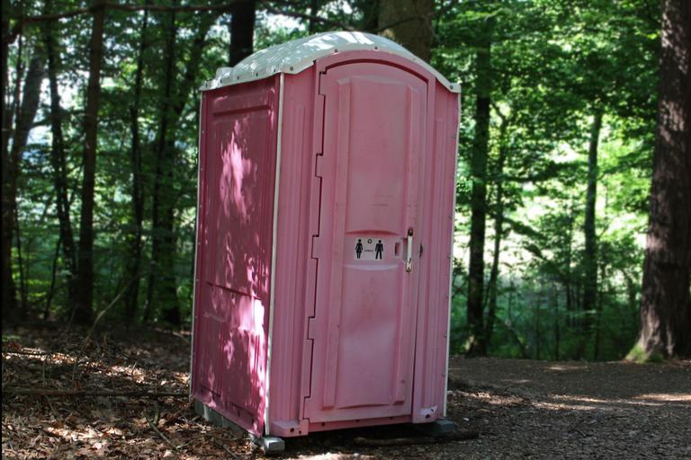 Keywords: toilet sanitary setup toilet cabin wc loo dixi toi toi public forest nature pink