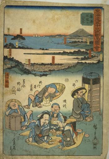 Keywords: Tōkaidō gojūsan tsugi saiken zu'e, Fujisawa by Hiroshige.jpg ja 海道五十三次細見 㑹 藤澤 道中風俗 草原野休の図 金毘羅参り 六部 順禮 修行 昼 en Fujisawa Pilgrims Resting from the series Pictorial Guide to the Fifty-three Stations of the Tôkaidô Customs of the Road Tôkaidô gojûsan tsugi saiken zue dôchû fûzoku circa 1845 1846 http //dl ndl go jp/info ndljp/pid/1309950 Institution National Diet Library Creator Utagawa Hiroshige other versions Custom license marker 2016 12 07 PD-Japan PD-old-auto-1923 1858 Tōkaidō gojūsan tsugi saiken zu'e 07 Fujisawa-juku Shōjōkō-ji Enoshima in art Sleeping people in art Onigiri in art Prints in the National Diet Library