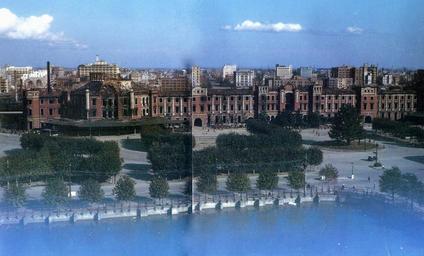 Keywords: Tokyo station disastrous scene of after Great Tokyo Air Raid.jpg ja 1945年 昭和20年 5 25日の空襲で無残な姿となった 京駅 手前の池は戦時のため中断した新丸ビル建設工事の 下掘削の跡で 防火用水池に利用していた http //showa mainichi jp/photo/2008/08/post-7da2-31 html 1945 マッカーサーの見た焼跡 フェーレイス・カラー写 集 京・横 1945年 文 春秋 1983年8 p34-35 Creator Gaetano Faillace PD-Japan-oldphoto Ruin of Tokyo Station Marunouchi Building 1945 in Tokyo Stations in Tokyo prefecture photographed before 1956 Gaetano Faillace |