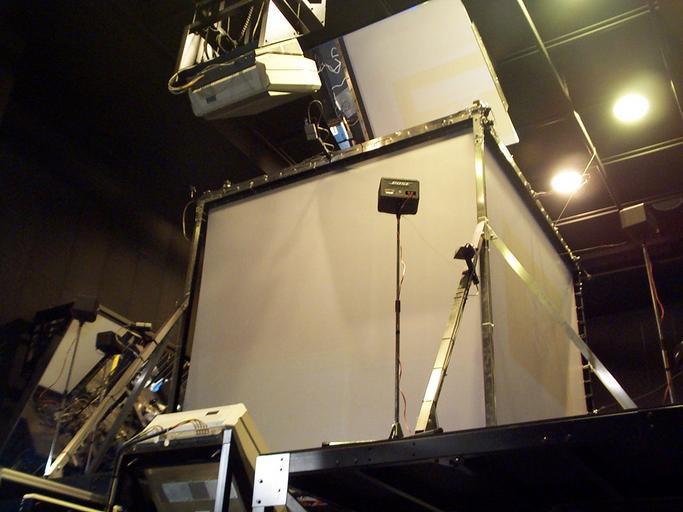 | Keywords: Tokyo University CABIN 2.jpg Rear view of the CABIN at Tokyo University's Intelligent Modeling Laboratory The CABIN is a 5-screen CAVE system Visible here are the ceiling-mounted projector and mirror for images projected on the ceiling of the CABIN Own 1999-09-25 Dave Pape PD-user see also Image Tokyo_University_CABIN_1 jpg Davepape CABIN |