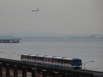 Keywords: TokyoMonorail 1078 and SKY B737-800 20101212.jpg en EMU type 1000 of Tokyo Monorail The airplane that is landing in the rear side is B737-800 of Skymark Airlines Tokyo Monorail 1000 series Boeing 737-800 Skymark Airlines Tokyo International Airport Airliners and trains