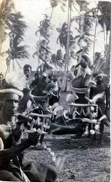 Keywords: Tolai dancers, Malakuna.jpg Tolai people Malakuna near the town of Rabaul Gazelle Peninsula of New Britain Papua New Guinea c 1918 Private photograph printed on Kodak Austral stock Tolai-Volk Gazelle-Halbinsel von Neubritannien Papua-Neuguinea <br /> Tänzer in Malakuna nahe der Stadt Rabaul privates Foto 1918 http //www oceania-ethnographica com/mel141 html Photographer unidentified Australian naval serviceman ~ 1918 PD-old Tolai AAdance Male dancers Dancers People in 1918 |