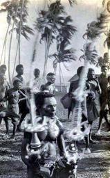 Keywords: Tolai dancers, Malakuna2.jpg Tolai people Malakuna near the town of Rabaul Gazelle Peninsula of New Britain Papua New Guinea c 1918 Private photograph printed on Kodak Austral stock Tolai-Volk Gazelle-Halbinsel von Neubritannien Papua-Neuguinea <br /> Tänzer in Malakuna nahe der Stadt Rabaul privates Foto 1918 http //www oceania-ethnographica com/mel145 html Photographer unidentified Australian naval serviceman ~ 1918 PD-old Tolai AAdance Male dancers Dancers People in 1918 |