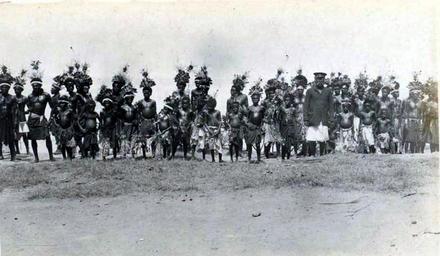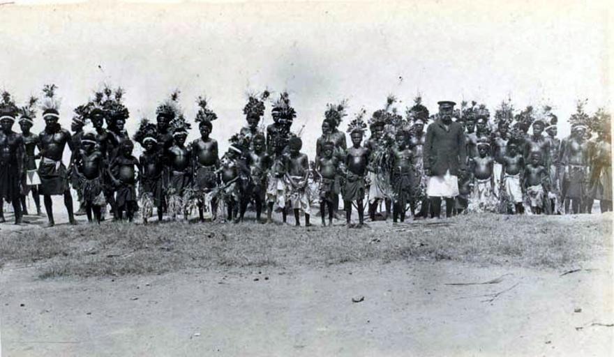 Keywords: Tolai dancers, Nodup2.jpg Tolai people Nodup near the town of Rabaul Gazelle Peninsula of New Britain Papua New Guinea c 1918 Private photograph printed on Kodak Austral stock Tolai-Volk Gazelle-Halbinsel von Neubritannien Papua-Neuguinea <br /> Tänzer in Nodup nahe der Stadt Rabaul 1918 privates Foto http //www oceania-ethnographica com/mel143 html Photographer unidentified Australian naval serviceman ~ 1918 PD-old Tolai AAdance Male dancers Dancers People in 1918 |