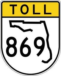 | Keywords: Toll Florida 869.svg en Shield for Florida Toll Road 869 <br> <br> 24 in by 30 in 600 mm by 750 mm Florida toll State Road shield made to the specifications of the http //www dot state fl us/trafficoperations/SignLibrary/Guide/sign_library_guide htm sign detail Uses the http //www triskele com/fonts/index html Roadgeek 2005 fonts United States law does not permit the copyrighting of typeface designs and the fonts are meant to be copies of a U S Government-produced work anyway Colors are from http //mutcd fhwa dot gov/kno-colorspec htm Pantone Green 342 converted to RGB by http //www reeddesign co uk/test/pantone2rgb html The outside border has a width of 1 1/16 in and a color of black so it shows up; in reality signs have no outside border <br> <br> Note that the drawing provides little in the way of measurements but is generally very accurate The Florida outline is from the http //www dot state fl us/rddesign/rd/RTDS/17355s1-12of12 pdf sign detail for normal State Road shields which is used according to http //www dot state fl us/trafficoperations/temanual/Chapter2/2 23 pdf The state outline and number positioning is guessed own SPUI original file <br>NE2 yellow-top sign 2006 PD spuiother Florida State Road shields 869 869 number |