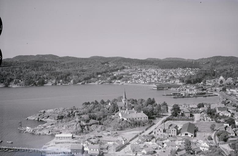 Keywords: flyfotografering widerøe larvik vestfold norway tollerodden hospitalgata larvik kirke larvikkirke fjellanger widerøe fjellangerwiderøe flyfoto skråfoto vestfoldmuseene outdoor WF.HL.11375 WF.HL.11375