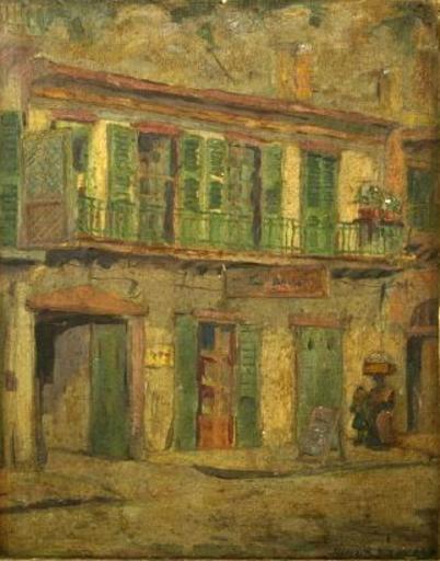 | Keywords: Tolouse Street French Quarter by Harry A Nolan.jpg Toulouse Street French Quarter Painting of street in the Freench Quarter of New Orleans by Harry A Nolan Oil on canvas painting by Harry A Nolan via http //www liveauctioneers com/item/8115068 No visible date probably circa 1910s - early 1920s Harry Armstrong Nolan 1891-1929 PD-Art Headcarrying in art Toulouse Street French Quarter Paintings of New Orleans Harry Armstrong Nolan | ||||