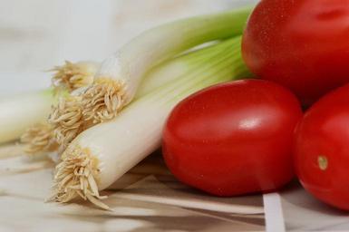 Keywords: tomatoes spring onions vegetables healthy vitamins frisch eat food bright red green bless you
