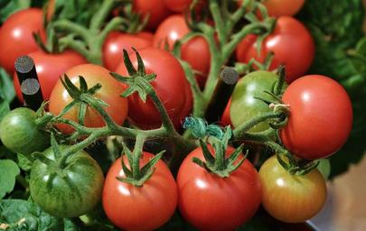 Keywords: tomatoes vegetables red delicious market stand food solanum lycopersicum