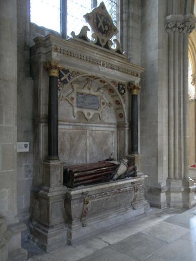 Keywords: Tomb of John Still, Wells Cathedral, Somerset, UK - 20100930.jpg The tomb of w John Still c 1543 “ 26 February 1607/8 the Bishop of Bath and Wells along the east wall of Wells Cathedral Wells Somerset England UK in the north transept leading into the Chapter House Erected by Nathaniel Still his son the tomb bears the following Latin inscription <blockquote> Memoriae sacrum Joanni Still Episcopo Bathoniensi et Wellensi Sacras Theologia Doctori Acerrimo Christianae Veritatis propugnatori non minus vitas integritate quam veria doctrina claro qui cum Domino diu vigilasset in Christo spe certa resurgendi obdormivit die XXVI Februarii mdcvii Vixit annos LXIIII sedit episcopus XVI Nathaniel Still filius primogenitus optimo patri maerens pietatis ergo posuit Sacred to the memory of John Still Bishop of Bath and Wells Doctor of Theology keenest warrior for Christian Virtue famed not less in integrity of life than for True Doctrine who when he had long kept vigil with the Lord went to sleep in Christ on the 26th day of February 1607 in the certain hope of rising again He lived for 64 years sat as Bishop for 16 Nathaniel Still first-born son mourning the best father thus placed it of piety </blockquote> On the upper part of the tomb are three escutcheon s From left to right they are 1 azure a saltire per saltire and per cross counter changed argent and Or the coat of arms of the See of Wells ; 2 the same impaling the Still coat of arms; and 3 the Still coat of arms 2010-09-30 16 04 Own ; originally uploaded to https //en wikipedia org en wikipedia on 2011 09 16 Lobsterthermidor at en wikipedia cc-zero Lobsterthermidor at http //en wikipedia org en wikipedia Original upload log page en wikipedia TombOfBishopJohnStillWellsCathedral jpg 2011-09-16 16 27 Lobsterthermidor 2736×3648 2154237 bytes <nowiki>Tomb of Bishop John Still d 1607/8 at Wells Cathedral against east wall of chapel in north transept leading to chapter house</nowiki> Tomb of John Still Wells Cathedral |