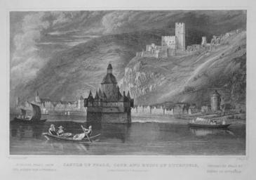 | Keywords: Tombleson Kaub.jpg Steel engraving from Views of the Rhine by William Tombleson around 1840 Castle Pfalzgrafenstein located in the middle of the Rhine and Castle Gutenfels above the village of Kaub on the oppoite bank scan by User Manfred Heyde ca 1840 Creator William Tombleson PD-old-100 Steel engravings Burg Gutenfels Kaub Engravings of castles in Rhineland-Palatinate Historic views of Burg Pfalzgrafenstein William Tombleson | ||||