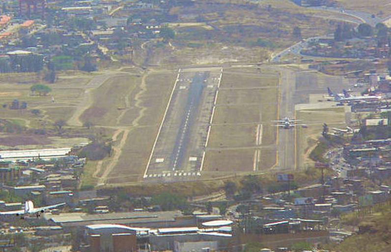 Keywords: Toncontín.jpg Pista del aeropuerto internacional Toncontín de Tegucigalpa Honduras en 2006 2007-03-14 own assumed Cratón Toncontín International Airport Taken with Panasonic Lumix DMC-FZ20 Aerial photographs of airports in Honduras