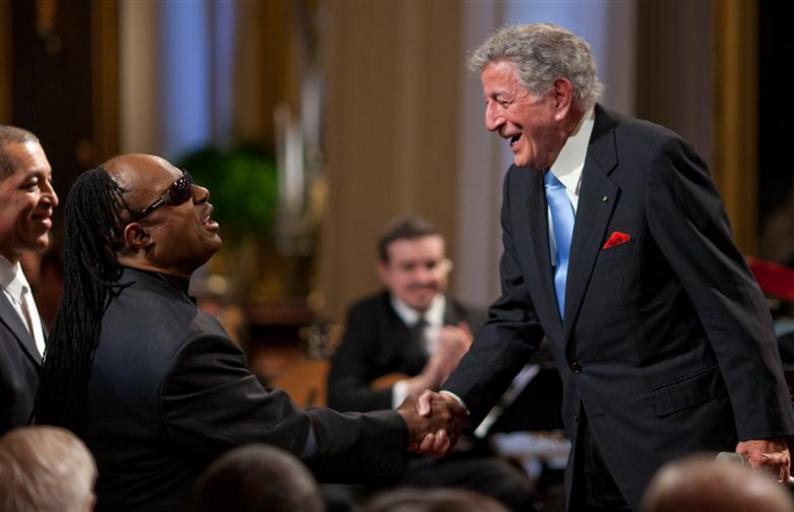 | Keywords: Tony Bennett meets Stevie Wonder.jpg  Tony Bennett meeting Stevie Wonder at the White House http //www whitehouse gov/assets/slideshows/896x504/P022509PS-05981 jpg 2009-02-25 Pete Souza official White House photographer PD-USGov Tony Bennett Stevie Wonder |
