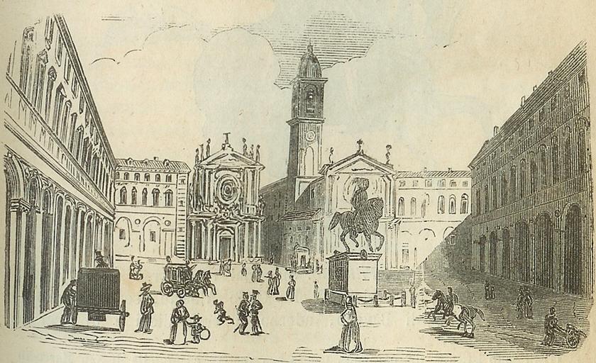 | Keywords: Torino e suoi dintorni 19.jpg en Engraving depicting San Carlo square in Turin it Incisione di Piazza San Carlo a Torino Guglielmo Stefani Domenico Mondo Torino e suoi dintorni - guida storico-artistica amministrativa e commerciale Torino Carlo Schiepatti 1852 Scan by Anassagora engraver unknown 1852 45 4 4 8 N 7 40 58 1 E PD-old Engravings of Turin Piazza San Carlo Turin Monument to Emanuele Filiberto Turin | ||||