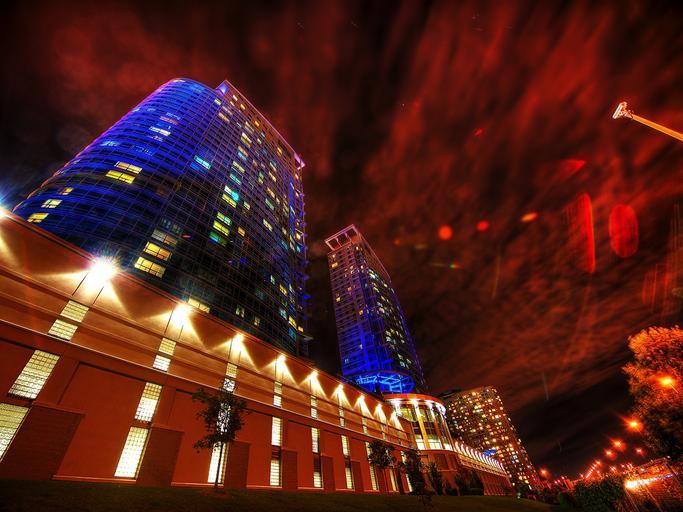 Keywords: toronto canada hdr wall building city town night evening lights lighting sky red clouds architecture beautiful colorful unique