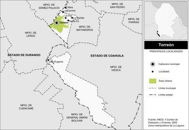 Keywords: Torreon localidades.svg Mapa de las principales localidades del municipio de Torreón Coahuila México own Inkscape 2010-03-06 Battroid Maps of Coahuila