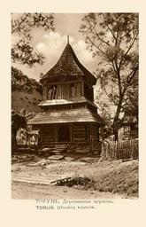 | Keywords: Torun'. Wooden Church WDL10051.png Artwork ru То унь Де евянная це ковь fr Torun' Église en bois en Torun' Wooden Church zh 托伦 制教堂 pt Torun' Igreja em madeira ar تورون الكنيسة الخشبية ru Снимок входит в альбом ве оятно опубликованный около 1920 г кото ый соде жит 20 фотог афий с видами Подка патской Руси Большая часть этого го истого к ая до Пе вой ми овой войны п инадлежала Авст о-Венг ии а в 1919 г он вошел в состав нового Чехословацкого госуда ства Сегодня самая к упная часть Подка патской Руси об азует Зака патскую область западной Ук аины а меньшие части п инадлежат Словакии и Польше Здесь изоб ажена колокольня це кви П есвятой Бого одицы в То уни пост оенная в 1809 г Село асположено в ежго ском айоне восточной Подка патской Руси Именно в этой части к ая сох анилось наибольшее количество де евянных це квей fr Cette image fait partie d'un album probablement publié en 1920 environ et qui contient 20 photographies de scènes de la Ruthénie subcarpatique Cette région montagneuse qui faisait essentiellement partie de l'Autriche-Hongrie avant la Première Guerre mondiale fut intégrée au nouvel État tchécoslovaque en 1919 Aujourd'hui la majeure partie de la Ruthénie subcarpatique forme l'oblast de Transcarpatie dans l'ouest de l'Ukraine avec des terres plus petites en Slovaquie et en Pologne Cette photographie présente le clocher de l'église de Notre Dame qui fut construite en 1809 à Torun` La ville se situe dans le district de Mijguiria dans l'est de la Ruthénie subcarpatique région hébergeant le plus grand nombre d'églises en bois existant encore aujourd'hui en This image is part of an album probably published in about 1920 that contains 20 photographs of scenes in Carpathian Ruthenia a mountainous region most of which was part of the Austria-Hungary before World War I but which became part of the new Czechoslovak state in 1919 Today the largest portion of it forms Zakarpattia Oblast in western Ukraine with smaller parts in Slovakia and Poland Shown here is the bell tower of the Church of Our Lady at Torun` built in 1809 The town is in Mizhhiria District in eastern Carpathian Ruthenia the part of the region in which the largest number of wooden churches survived zh 这张照片出自 尔巴阡-鲁塞尼亚 相册 该相册可能出版于 1920 年左右, 其中收集了 20 张 尔巴阡-鲁塞尼亚风景照片 尔巴阡-鲁塞尼亚是 个多山的 区, 战之前其大部分属于奥匈 国,但 1919 年成为新的国家捷克斯洛伐克的 部分 今天,其 大的部分构成乌克兰西部的外 尔巴阡州,其余较小部分属于斯洛伐克和波兰 这里显示的是于 1809 年 托伦建 的 母教堂的钟楼 这个镇位于 尔巴阡-鲁塞尼亚 部的米兹希里亚 区,该 区 存下 的 制教堂数量 多 pt Esta imagem faz parte de um álbum provavelmente publicado por volta de 1920 que contém 20 fotografias de cenas em Rutênia dos Cárpatos uma região montanhosa em que grande parte pertencia à Áustria-Hungria antes da Primeira Guerra Mundial mas que se tornou parte do novo estado da Tchecoslováquia em 1919 Atualmente a maior parte dela forma o Oblast da Transcarpátia na Ucrânia ocidental com partes menores na Eslováquia e Polônia É mostrada aqui a torre de sinos da Igreja de Nossa Senhora em Torun` construída em 1809 A cidade está localizada no Distrito de Mizhhiria na Rutênia dos Cárpatos oriental a parte da região em que sobreviveu o maior número de igrejas de madeira ar تُعد هذه الصورة جزءًا من ألبوم نُشر على الأرجح حوالي عام 1920، ويحتوي على 20 صورة فوتوغرافية لمناظر في روثينيا الكارباتية، وهي منطقة جبلية كان مُعظمها جزءًا من الإمبراطورية النمساوية المجرية قبل اندلاع الحرب العالمية الأولى، ولكنها أصبحت جزءًا من الدولة التشيكوسلوفاكية الجديدة عام 1919 يقع مُعظم الإقليم حاليًا في مقاطعة زاكارباتيا أوبلاست غرب أوكرانيا، وتوجد أنحاءٌ منه في سلوفاكيا وبولندا يَظهر هنا برج الجرس لكنيسة سيدتنا بتورون، تلك الكنيسة التي بُنيت عام 1809 تقع البلدة بمقاطعة ميزيريا في روثينيا الكارباتية الشرقية وهو ذاك الجزء من المنطقة الذي يوجد به أكبر عدد من الكنائس الخشبية الباقية حتى الآن es Esta imagen pertenece a un álbum probablemente publicado alrededor de 1920 que contiene 20 fotografías de escenas de la Rutenia carpática una región montañosa de la que gran parte pertenecía al Imperio austro-húngaro antes de la Primera Guerra Mundial pero que se convirtió en parte del nuevo Estado checoslovaco en 1919 En la actualidad la mayor parte del territorio forma el óblast de Zakarpatia en el oeste de Ucrania mientras que áreas más pequeñas se encuentran en Eslovaquia y Polonia Aquí se muestra el campanario construido en 1809 de la Iglesia de Nuestra Señora en Toruń La ciudad está en el distrito de Mizhhiria en el este de la Rutenia carpática el área en donde se encuentra la mayor cantidad de iglesias de madera sobrevivientes <br> ru Колокольни; Це кви; Де евянные соо ужения f