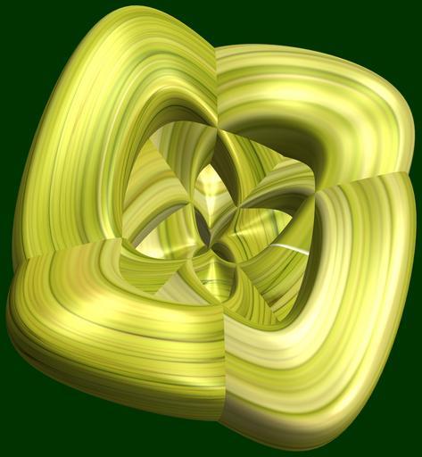 | Keywords: mathematica 3d cg parametricplot3d texture torus code program algorithm プログラム コード アルゴリズム 輪環 りんかん ドーナツ どーなつ lissajous リサージュ geometric sculpture geometricsculpture shape geometry sculpture mapping テクスチャ マッピング 模様 もよう abstract 抽象 ちゅうしょう アブストラクト design pattern デザイン パターン graphic グラフィック グラフィクス structure 意匠 構造 symmetry 対称性 たいしょうせい シンメトリー 対称 たいしょう a = 2; (* center hole size of a torus *) b1 = 4; (* number of cross *) b2 = 3; (* number of cross *) c = 0; (* distance from the center of rotation *) d = 1; (* number of torus *) w = 1; (* gap width *) SetOptions[ParametricPlot3D, PlotRange -> Full, Mesh -> None, Boxed -> False, Axes -> None, PlotPoints -> 400, ImageSize -> 3000, Background -> Darker[Green, 0.8], PlotStyle -> Directive[Specularity[White, 90], Texture[Import["D:/tmp/71.jpg"]]], TextureCoordinateFunction -> ({#4 + #5, #5/Pi} &), Lighting -> "Neutral"]; f[v_] := Sin[2 Sin[Sin[Sin[v]]]]; x = (a - Cos[t] + w Sin[b1 s]) Cos[b2 s] + c; y = (a - Cos[t] + w Sin[b1 s]) f[b2 s] + c; z = w Sin[b1 s] + f[t] + c; rm = Table[{x, y, z}.RotationMatrix[2 i Pi/d, {0, 0, 1}], {i, d}]; ParametricPlot3D[rm, {t, 0, 2 Pi}, {s, 0, 2 Pi}] (*--- The Texture *) a = 2; (* center hole size of a torus *) b1 = 4; (* number of cross *) b2 = 3; (* number of cross *) c = 0; (* distance from the center of rotation *) d = 1; (* number of torus *) w = 1; (* gap width *) SetOptions[ParametricPlot3D, PlotRange -> Full, Mesh -> None, Boxed -> False, Axes -> None, PlotPoints -> 400, ImageSize -> 3000, Background -> Darker[Green, 0.8], PlotStyle -> Directive[Specularity[White, 90], Texture[Import["D:/tmp/71.jpg"]]], TextureCoordinateFunction -> ({#4 + #5, #5/Pi} &), Lighting -> "Neutral"]; f[v_] := Sin[2 Sin[Sin[Sin[v]]]]; x = (a - Cos[t] + w Sin[b1 s]) Cos[b2 s] + c; y = (a - Cos[t] + w Sin[b1 s]) f[b2 s] + c; z = w Sin[b1 s] + f[t] + c; rm = Table[{x, y, z}.RotationMatrix[2 i Pi/d, {0, 0, 1}], {i, d}]; ParametricPlot3D[rm, {t, 0, 2 Pi}, {s, 0, 2 Pi}] (*--- The Texture *) |