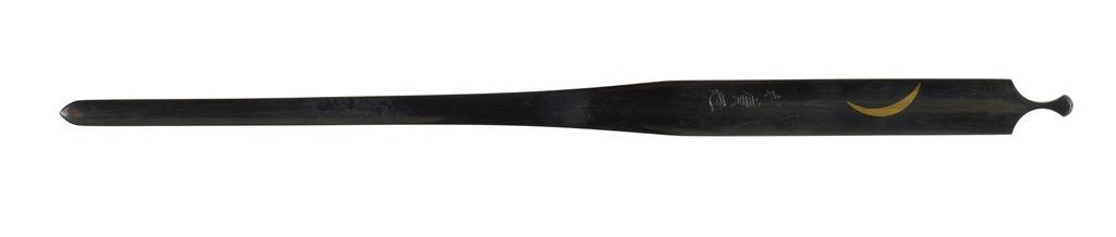 | Keywords: Toshihiro - Kogai with Moon and Fishing Nets - Walters 5112335 - Back.jpg At the right of the composition are four poles with holding fishing nets in the water On the left is the reflection of the new moon on the water The moon itself is shown on the reverse This is part of a mounted set ca 1855 Edo shakudo gold cm 21 6 accession number 51 1233 5 79138 Henry Walters Baltimore date and mode of acquisition unknown Walters Art Museum Henry Walters Acquired by Henry Walters Signature Toshihiro kao place of origin Japan Walters Art Museum license Kogai in the Walters Art Museum Toshihiro Media contributed by the Walters Art Museum needs category review |