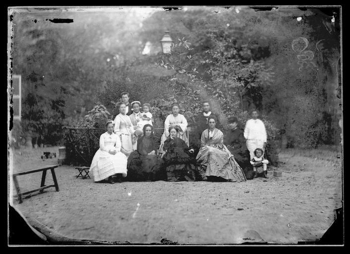 Keywords: Toulouse , rue d’Astorg. Groupe. Les Gomiécourt , nous - Fonds Trutat - 51Fi209.jpg Domicile des Trutat 11 rue d'Astorg Vers 1869 Portrait de groupe des familles de Gomiécourt et Trutat dans la cour de la maison Au premier rang de gauche à droite assises cinq femmes et un enfant la deuxième est Louise Sabatier mère d'Eugène robes longues à l'extrême droite Paul fils d'Eugène Trutat assis par terre ; au second rang debout six personnes femmes la quatrième est Caroline Cambe femme d'Eugène en deuxième position une femme tient dans ses bras Henri fils d'Eugène ; au dernier rang homme de face ; banc buisson depicted people depicted place circa 1869 photo glass cm 13 18 Institution Archives municipales de Toulouse 51Fi209 object history ProvenanceEvent 1971 gift Association Les Toulousains de Toulouse et Amis du Vieux Toulouse Jean Trutat ProvenanceEvent 2006-12-14 deposited Archives municipales de Toulouse Association Les Toulousains de Toulouse et Amis du Vieux Toulouse exhibition history Mention manuscrite de Trutat sur l ™enveloppe «Toulouse rue d ™Astorg Groupe Les Gomiécourt nous» Ancien B 11n° 24 accession number 51Fi209 Fonds Eugène Trutat - Archives municipales de Toulouse PD-old-100-1923 Fonds Trutat - Archives municipales de Toulouse 51Fi209 Rue d'Astorg Toulouse Photographs of Toulouse by Eugène Trutat |