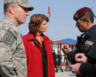 Keywords: Tour of Central Training Facility DVIDS240709.jpg en Lt Gen William B Caldwell IV left commander NATO Training Mission Afghanistan and U S Senator Lisa Murkowski talk with Brig Gen Carmelo Burgio commander Combined Training Advisory Group Police during a tour of the Central Training Facility Kabul Jan 9 2010 Murkowski was joined by Senators Roger F Wicker Mitch McConnell and Mike Crapo and Rep Michael Castle for a visit to CTC and other facilities in the area The Congressional delegation received briefings from CTC NATO Training Mission-Afghanistan and International Security Assistance Force senior leadership and met with Afghan national police officers while in the Kabul area The mission of NTM-A is to train the Afghan national security forces and enhance the government of the Islamic Republic of Afghanistan's ability to achieve a stable and secure country 2010-01-09 Chief Petty Officer Julian Carroll https //www dvidshub net/image/240709 100109-N-+++++-014 2010-01-17 14 08 KABUL AF PD-USGov-Military-Navy NATO Training Mission - Afghanistan Images from DoD uploaded by FĂŚ |