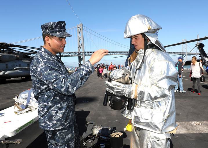 Keywords: Tour held aboard USS Makin Island during SFFW 121007-N-UK333-097.jpg en Aviation Boatswain's Mate Handler 3rd Class Louis Calle assigned to the amphibious assault ship USS Makin Island LHD 8 explains the operations of firefighting equipment during a tour of the flight deck during San Francisco Fleet Week 2012 SFFW 12 is scheduled from Oct 3-8 and brings more than 2 500 sailors Marines and Coast Guardsmen from four ships to the city of San Francisco in order to highlight the personnel technology and capabilities of the sea services The U S Navy has a 237-year heritage of defending freedom and projecting and protecting U S interests around the globe Join the conversation on social media using warfighting U S Navy photo by Mass Communication Specialist 1st Class Ronald Gutridge 2012-10-07 Petty Officer 2nd Class Ronald Gutridge https //www dvidshub net/image/719286 121007-N-UK333-097 2012-10-11 03 44 SAN FRANCISCO CA US PD-USGov-Military-Navy USS Makin Island LHD-8 Images from DoD uploaded by Fæ |