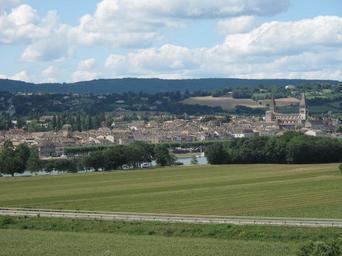 | Keywords: Tournus from Lacrost.jpg en The town of Tournus Saône-et-Loire France seen from the village of Lacost on a height On the right the abbatiale Saint-Philibert and on the left the steeple of the church of Sainte-Madeleine slightly above the roofs of the town fr La ville de Tournus Saône-et-Loire vue depuis le village de Lacrost sur une hauteur On voit sur la droite l'abbatiale Saint-Philibert et sur la gauche le clocher de l'église de la Madeleine dépasse légèrement des toits own Tangopaso 2010-08-08 46 33 20 13 N 4 55 39 03 E region FR_heading NW Lacrost Saint-Philibert de Tournus Abbey Sainte-Madeleine - Tournus |