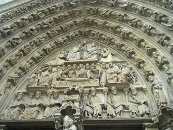Keywords: tower church monument tourism architecture building sacred building paris france object tour ornaments sculpture decorating stone sacral characters saints kings statues gothic the basilica notre dame temple religion