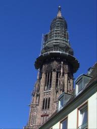 Keywords: tower münster tower freiburg integrated church sky blue münster steeple