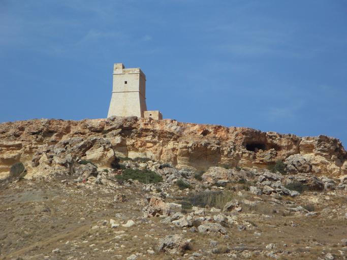 Keywords: tower watchtower cliffs defense rock historically defend fixed fortress island malta building defensive tower