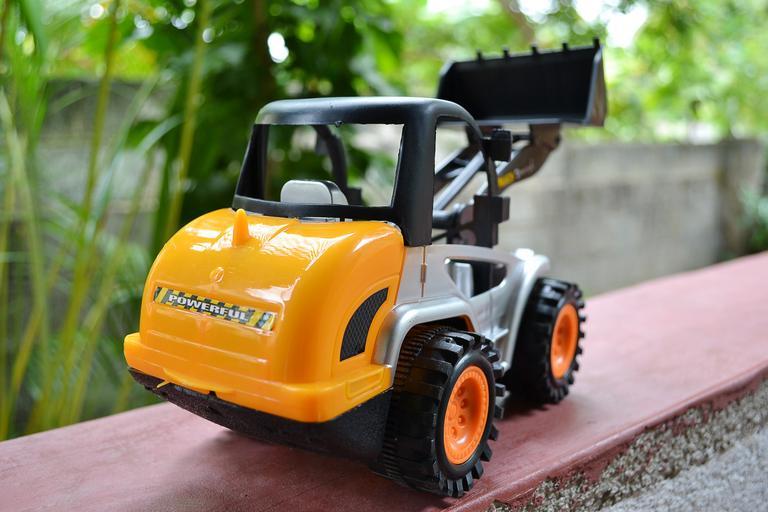 Keywords: toy plastic dozer backhoe close-up wheels construction yellow sri lanka ceylon mawanella