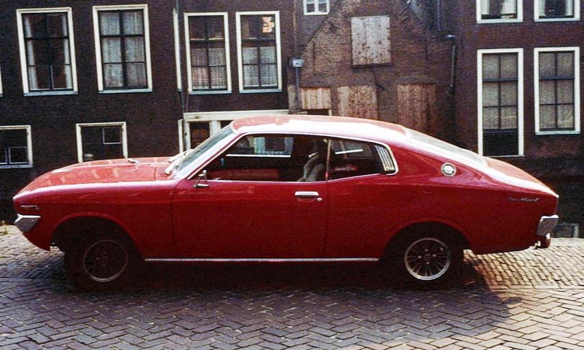 Keywords: Toyota Corona II Coupe second generation in NL.jpg Toyota 'Corona II' second generation coupe in Leiden Own 1975 photo date Charles01 Toyota Corona Mark II X10/X20 Red coupes Side views of automobiles Photographs by Charles01