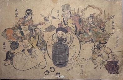 Keywords: Toyouni I-New-Year.jpg en New Year surimono The Seven Gods of Luck designed by seven artists of the Utagawa school Toyokuni I Kunimaru Toyokiyo Kuniyasu Kunisada I Kunimitsu Kunitsugu horizontal ōban c 1820 de Neujahrs-surimono Die sieben Glücksgötter gezeichnet von sieben Künstlern der Utagawa-Schule Toyokuni I Kunimaru Toyokiyo Kuniyasu Kunisada I Kunimitsu Kunitsugu horizontales ōban um 1820 Internet Toyokuni I e a 1820-01-01 PD-old-100 PD-old Surimono Utagawa Toyokuni Surimono by Utagawa Kunisada New Year celebrations in Japan Seven Lucky Gods Woodblock prints of the Edo period Utagawa school painters