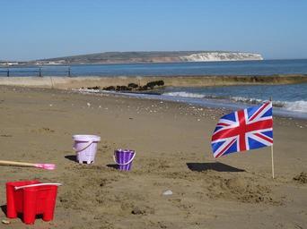 Keywords: toys isle of wight shanklin beach beach sea waves ripples sky sand sand castle flag