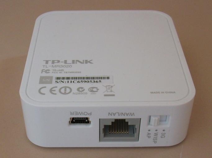 | Keywords: TP-LINK TL-MR3020 LAN-connector.jpg en TP-LINK TL-MR3020 mobile 3G-WLAN Router LAN-connector Power Switch de mobiler 3G-WLAN Router - welcher entweder via UMTS-USB-Stick an das mobile Datennetz angeschlossen werden kann und eine WLAN- und LAN-Verbindung bereitstellt oder aber via WAP an ein LAN-Netzwerk angeschlossen wird und als Access Point fungiert indem er eine WLAN-Verbindung aufbau own Markus Bärlocher 2013-04-14 Cc-zero Network routers | ||||