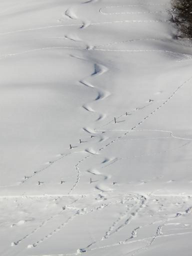 Keywords: traces snow snowy skiing wag track winter cold white fence deep snow snowed in