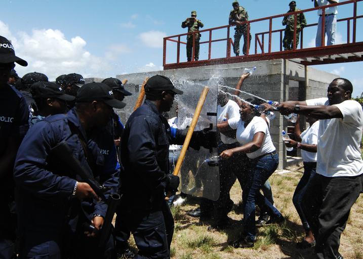 Keywords: Tradewinds 2014 police riot drill 140606-N-IA840-213.jpg en Regional Security System RSS police respond to a mock prison riot at Camp Crabbs June 6 The simulated riot is part of a disaster response exercise to test local emergency services Antigua and Barbuda Defence Force and RSS members in search and rescue medical triage and security procedures as part of Tradewinds 2014 Tradewinds is a joint combined exercise conducted in conjunction with partner nations to enhance the collective abilities of defense forces and constabularies to counter transnational organized crime and to conduct humanitarian/disaster relief operations U S Navy photo by Chief Mass Communication Specialist Elizabeth Thompson 2014-06-06 Chief Petty Officer Elizabeth Thompson https //www dvidshub net/image/1383945 140606-N-IA840-213 2014-06-06 14 39 ST JOHN'S AG PD-USGov-Military-Navy Tradewinds 2014 Images from DoD uploaded by Fæ |