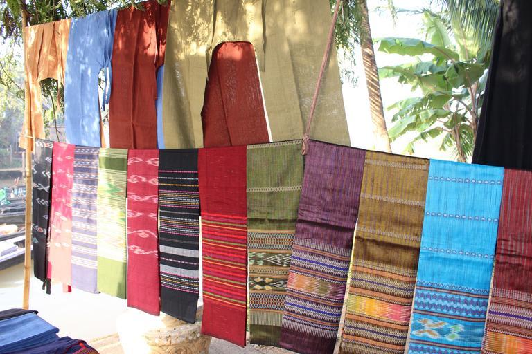 Keywords: Traditional Clothes at Inle Floating Market.JPG en Traditional Clothes at Inle Floating Market 2013-12-23 09 34 04 own Mydaydream89 cc-zero Inle Lake Images by mydaydream/Myanmar OpenMyanmar Uploaded with UploadWizard Longyis