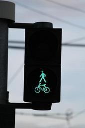 Keywords: traffic lights green pedestrian cyclists signal lamp traffic signal traffic road sign road light males go light signal rules of the road little green man green light traffic light signal beacon footbridge cross