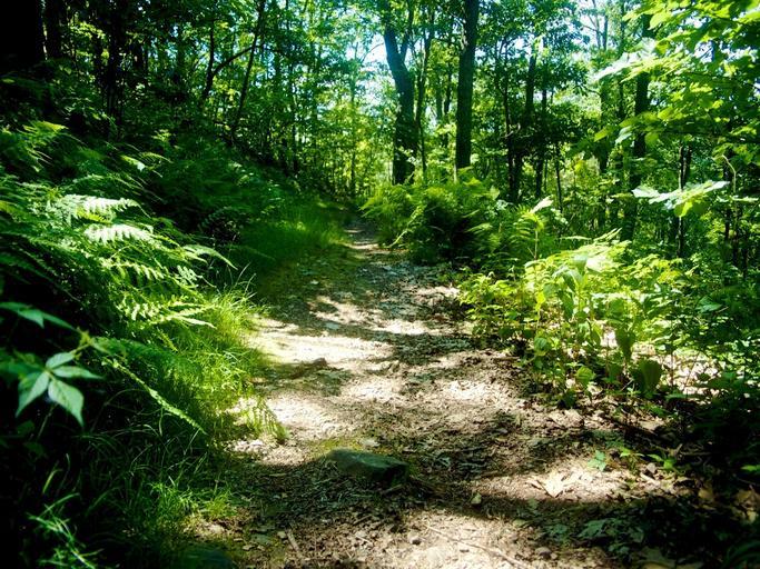 Keywords: trail hiking hike path walkway nature outdoors blue ridge mountains sunlight trees foliage plants shrubbery organic