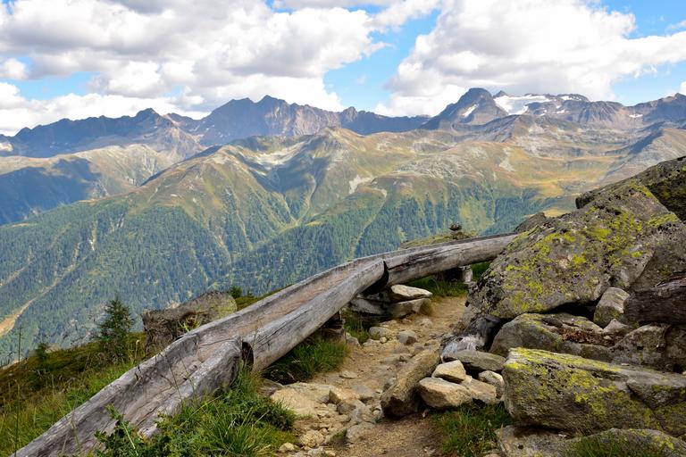 Keywords: trail landscape water running mountains away view alpine nature panorama sky outlook clouds