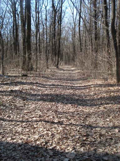 Keywords: trail path woods forest solitude quiet nature trees forest road secluded seasonal dead brown