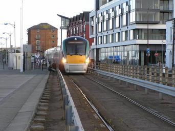 | Keywords: Train approaching quays in wexford town from Rosslare apr2012.JPG en Picture of a train approaching the quays in Wexford Town from Rosslare heading to Dublin Taken on evening 6 20pm on Sat 14th Apr 2012 2012-04-14 18 20 55 own Terence wiki cc-zero Passenger trains in Ireland Wexford railway station IE 22000 Class On-street running |