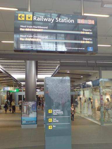 | Keywords: Train Info Display Sylvia Park Mall.jpg  Train departure information display within the Sylvia Park shopping centre in Auckland New Zealand Coordinates are a bit approximate as the sign is located under the highway between the two mall parts but should be accurate within <nowiki>< </nowiki> 5m own Own picture 2010 Uploader -36 9152361 174 8413664 Photos taken by Ingolfson 2010 in Auckland Public transport information boards Directional signs in New Zealand LED displays at train stations in New Zealand Sylvia Park Rail transport infrastructure in Auckland Time 16 34 |