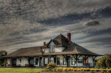 Keywords: train station canada railway platform transit cloudy scenic landscape fort saskatchewan alberta departure historic winter railroad transportation canadian conveyance clouds cold building architecture