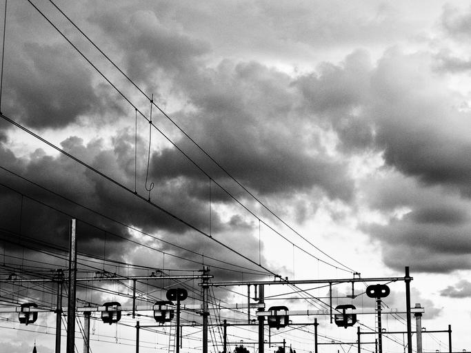 MAKE A MEME View Large Image train wires clouds black and white amsterdam netherlands
